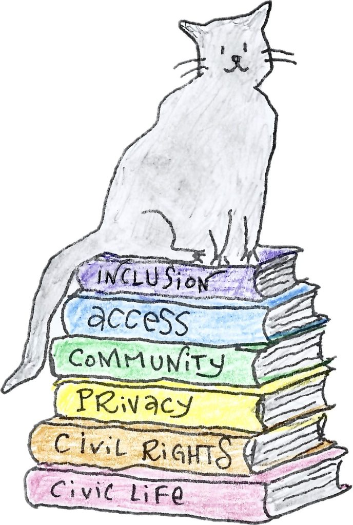 safety and inclusion: libraries are for everybody. we must ensure our libraries remain a place of safety and inclusion for all our community members, of all ages, faiths, gender identities, abilities, sexualities, races, and ethnicities.